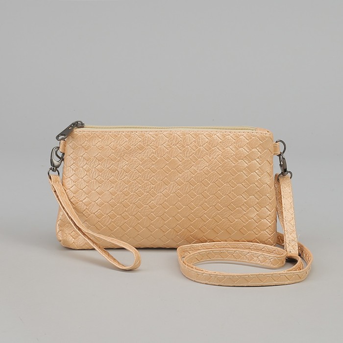 Клатч, плетение, отдел с перегородкой на молнии, ручка, длинный ремень, цвет молочный