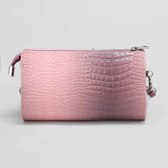 Клатч женский, 1 отдел на молнии, с ручкой, длинный ремень, цвет тёмно-розовый