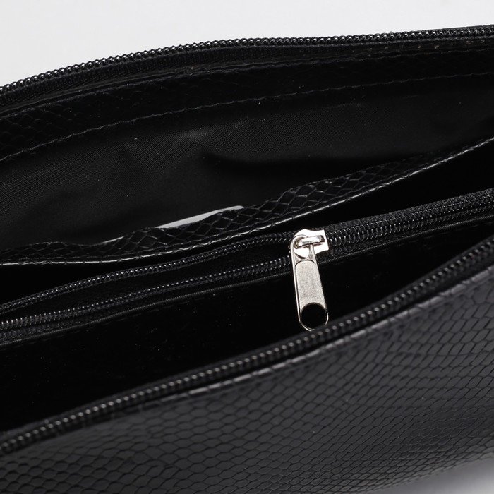 Клатч женский, 1 отдел на молнии, с ручкой, длинный ремень, змея, цвет чёрный