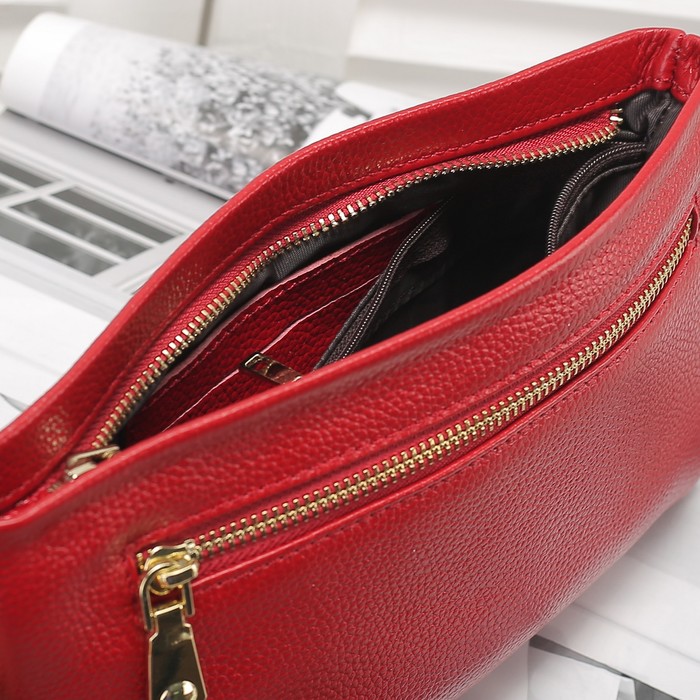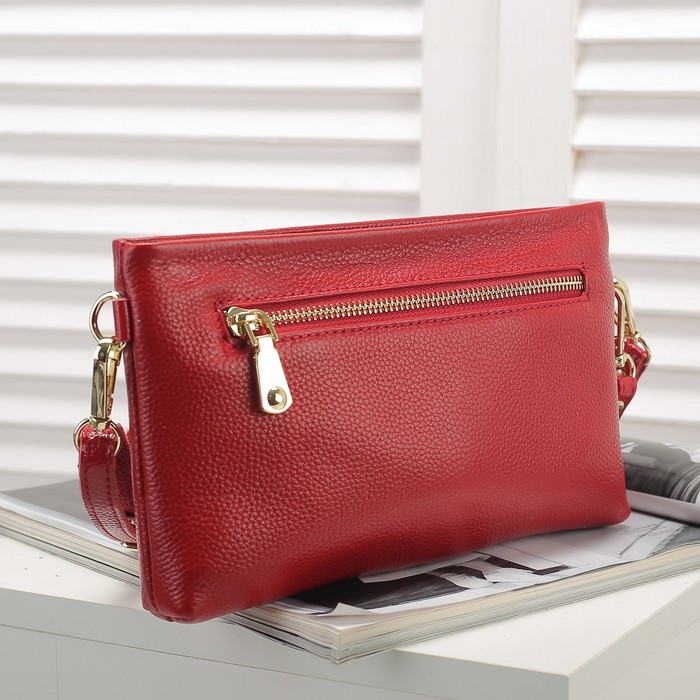 Клатч женский, 1 отдел с перегородкой, 2 наружных кармана, ручка, длинный ремень, цвет красный