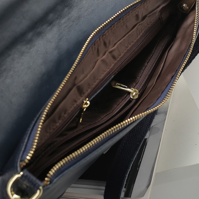 Клатч женский, 1 отдел с перегородкой, наружный карман, ручка, длинный ремень, цвет синий