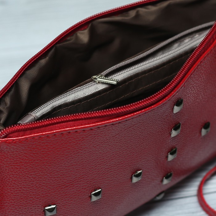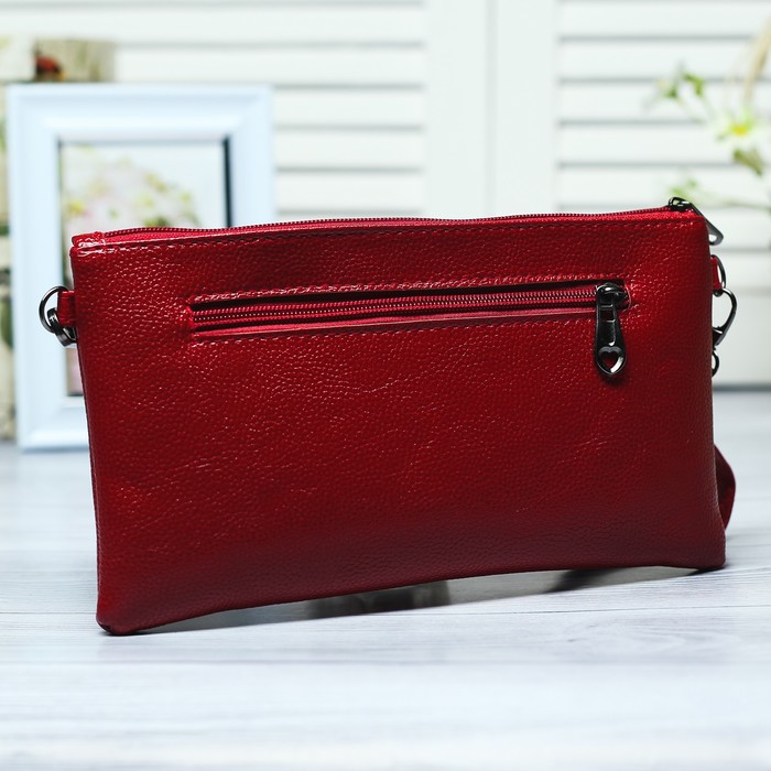 Клатч женский, 2 отдела на молнии, длинный ремень, цвет красный