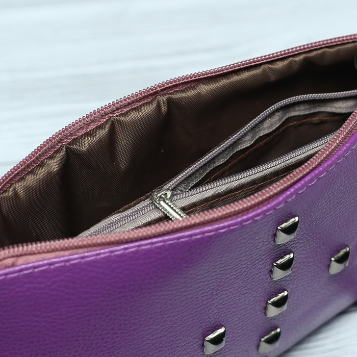 Клатч женский, 2 отдела на молнии, длинный ремень, цвет сливовый