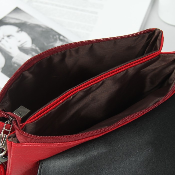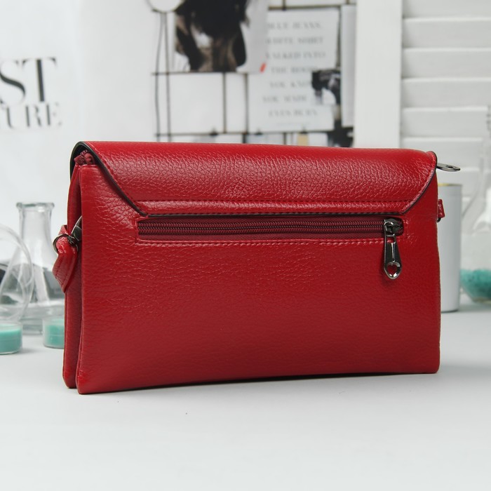 Клатч женский, 2 отдела на молнии, наружный карман, с ручкой, регулируемый ремень, цвет красный
