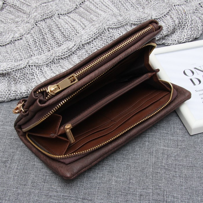 Клатч женский, 2 отдела на молниях, с ручкой, цвет коричневый