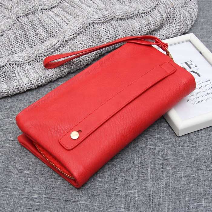 Клатч женский, 2 отдела на молниях, с ручкой, цвет красный