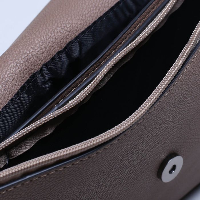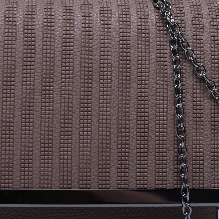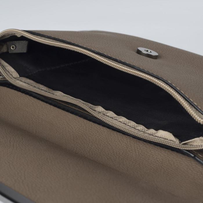 Клатч женский, 3 отдела на клапане, длинная цепь, цвет кофе