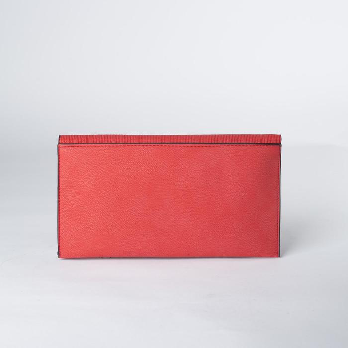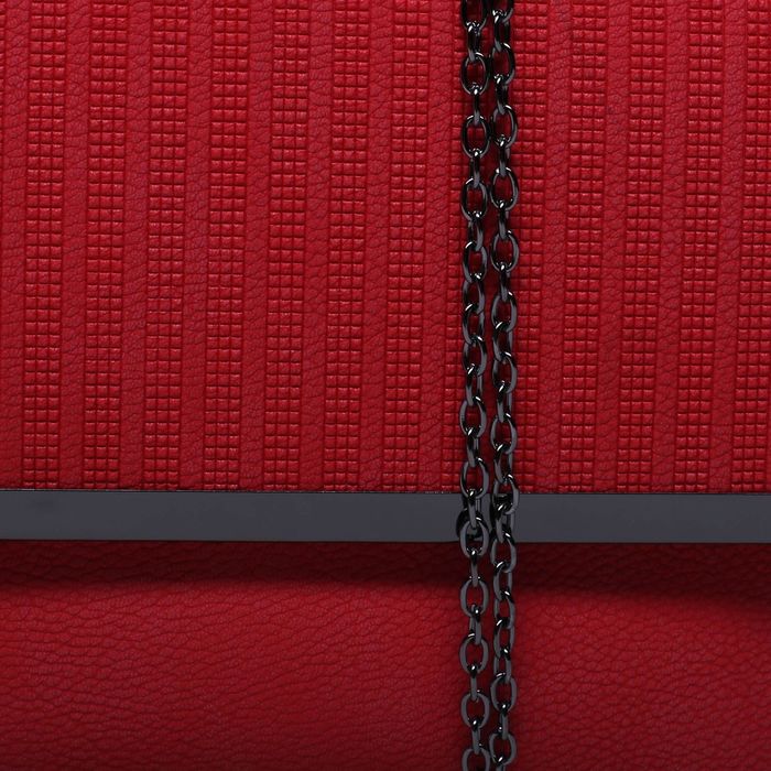 Клатч женский, 3 отдела на клапане, длинная цепь, цвет красный