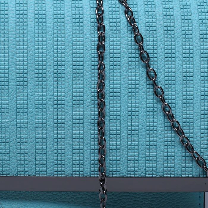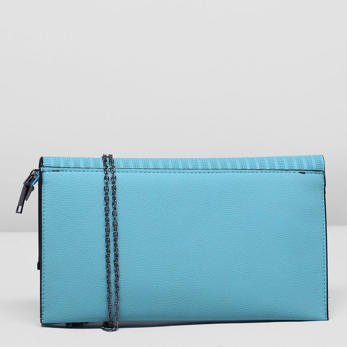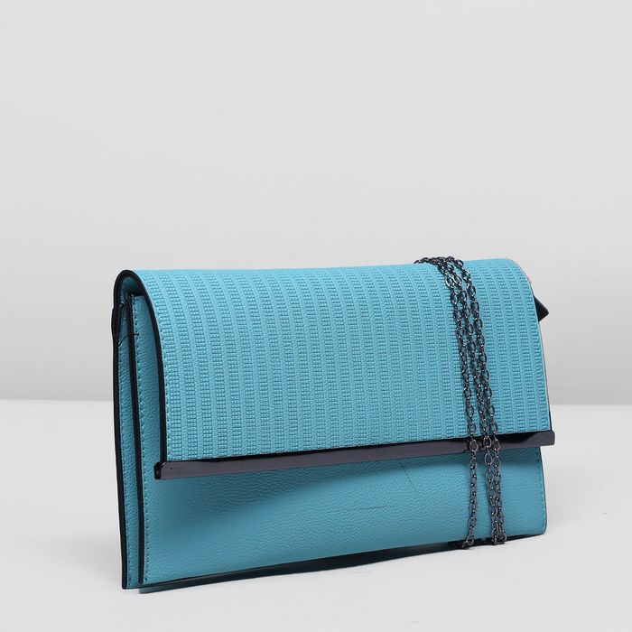Клатч женский, 3 отдела на клапане, длинная цепь, цвет мятный