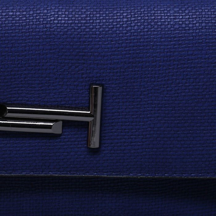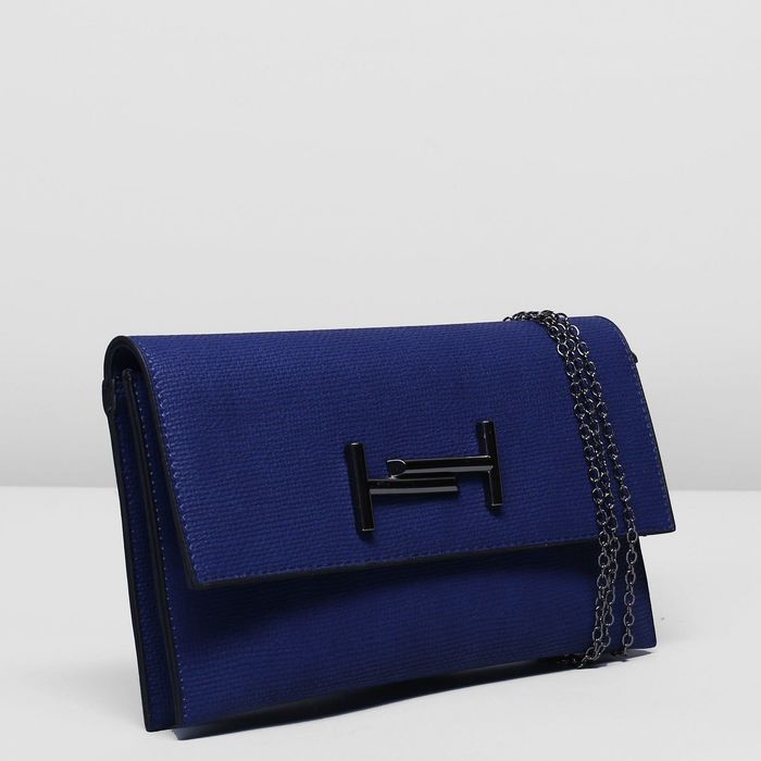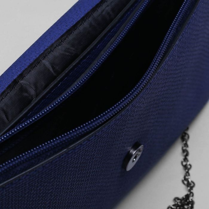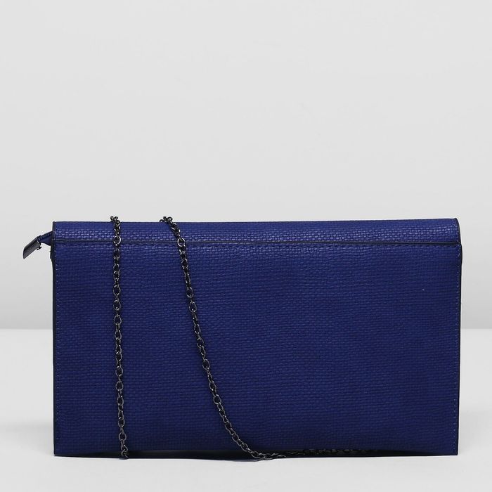 Клатч женский, 3 отдела на клапане, длинная цепь, цвет синий