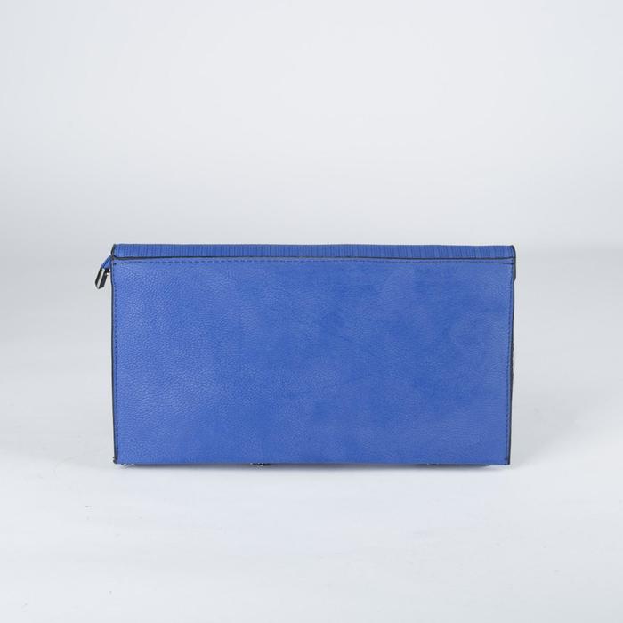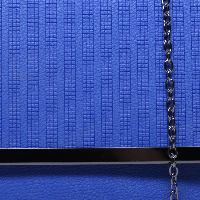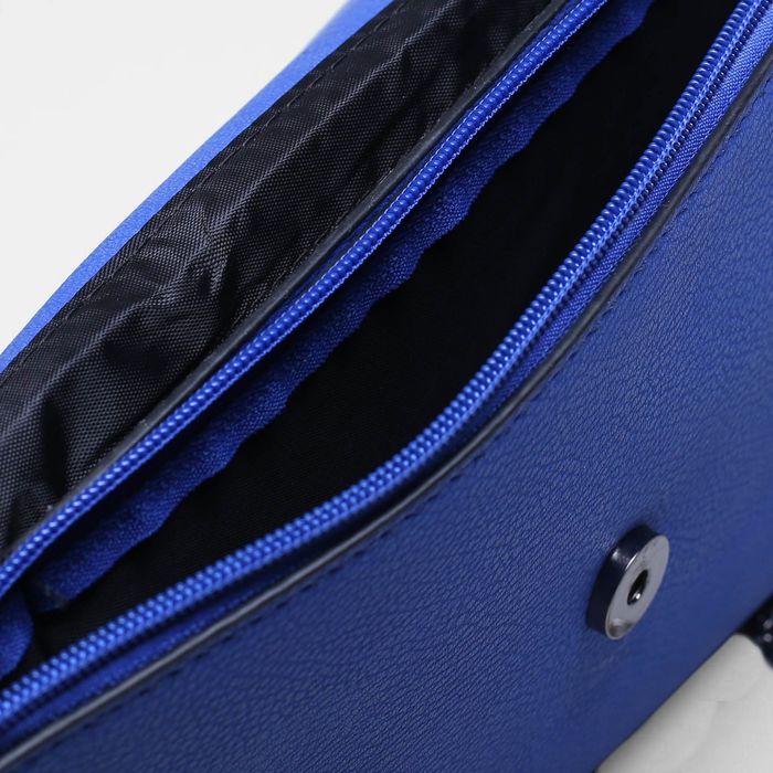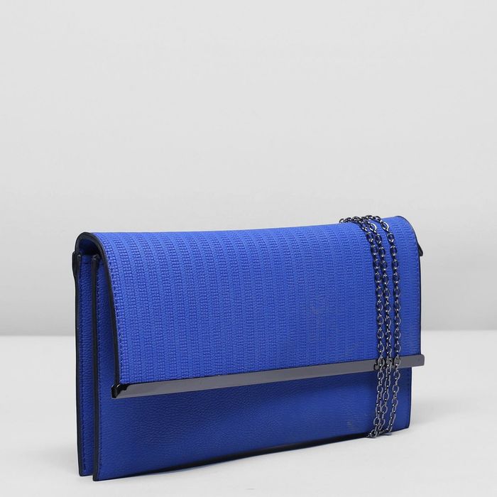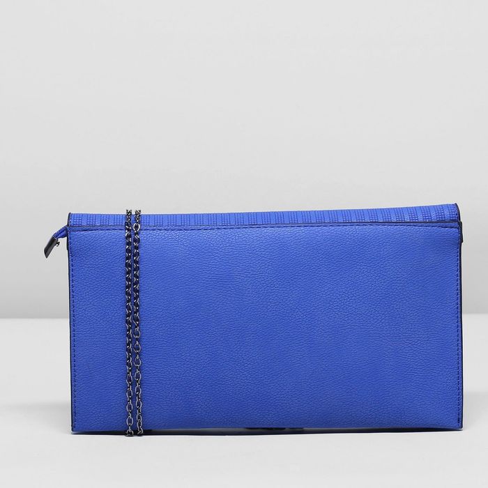 Клатч женский, 3 отдела на клапане, длинная цепь, цвет синий