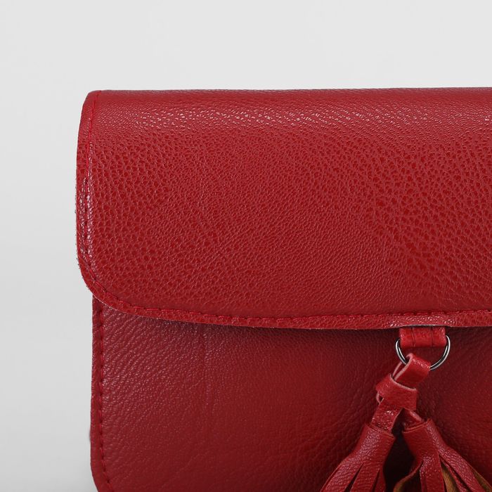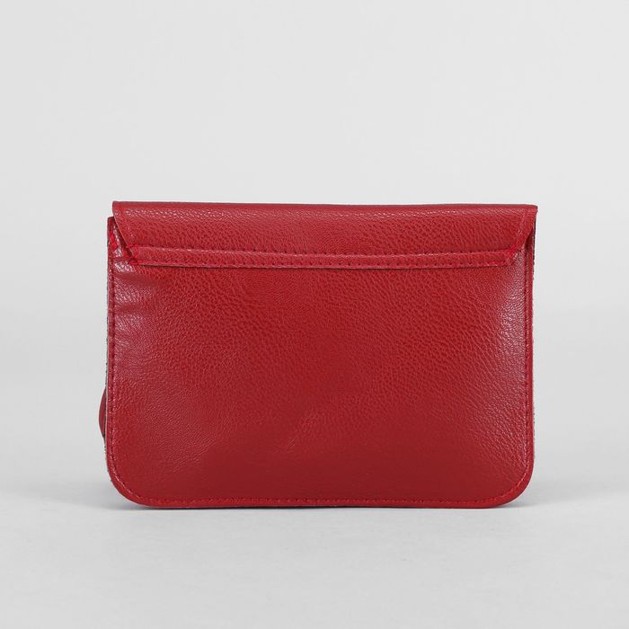 Клатч женский, 3 отдела на клапане, длинный ремень, цвет красный