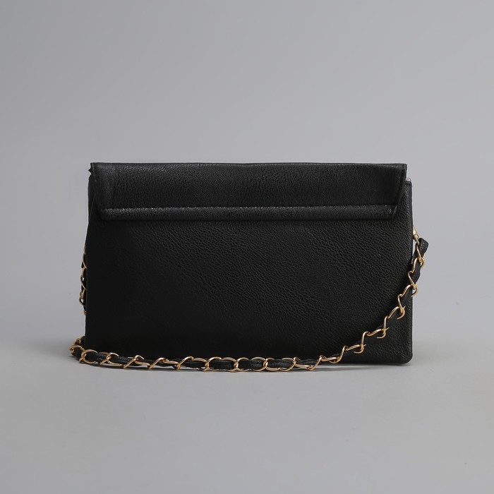 Клатч женский, 3 отдела на молнии, 2 наружных кармана, длинный ремень, цвет чёрный