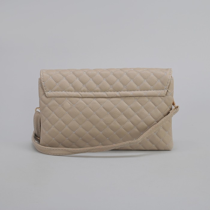 Клатч женский, 3 отдела на молнии, 2 наружных кармана, длинный ремень, цвет хаки