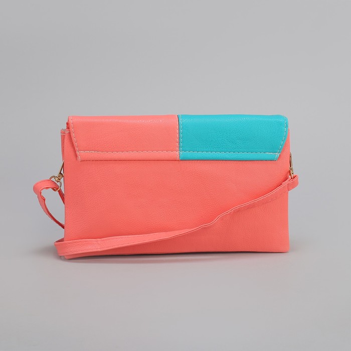 Клатч женский, 3 отдела на молнии, длинный ремень, цвет бирюзовый/розовый