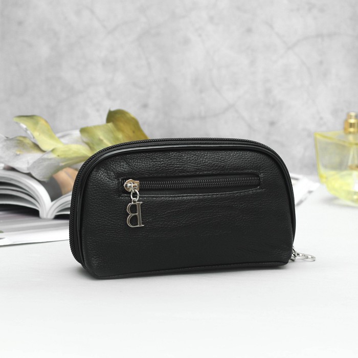 Клатч женский, 4 отдела, с ручкой, цвет чёрный