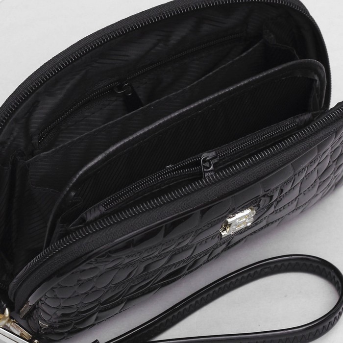 Клатч женский, 4 отдела, с ручкой, цвет чёрный