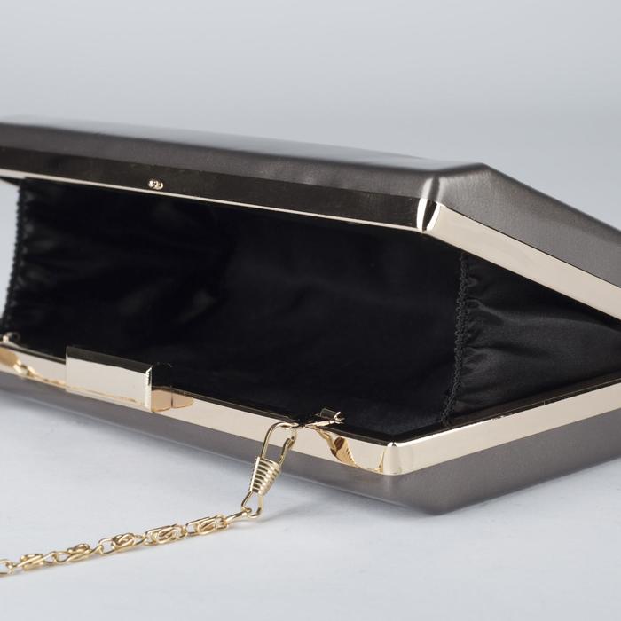 Клатч женский «Элегантность», отдел на рамке, длинная цепь, перламутр серый