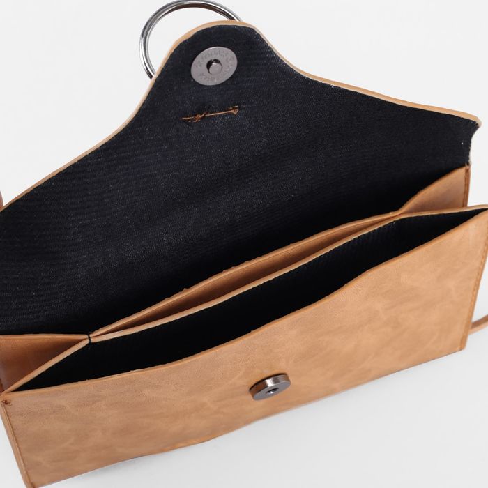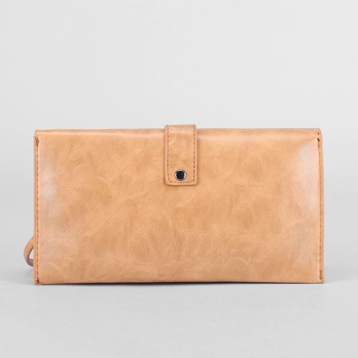 Клатч женский "Элегия", 2 отдела на клапане, длинный ремень, цвет бежевый