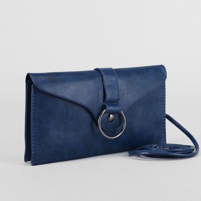 Клатч женский «Элегия», 2 отдела на клапане, длинный ремень, цвет синий