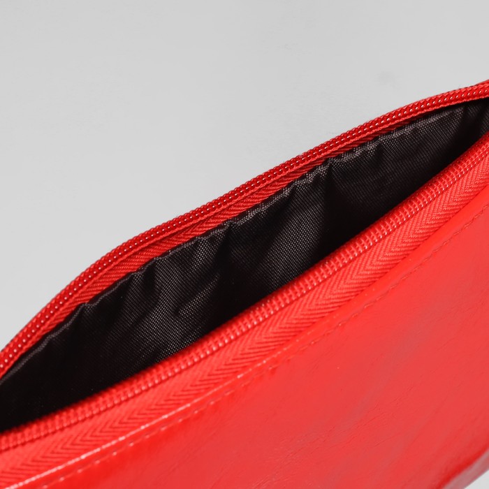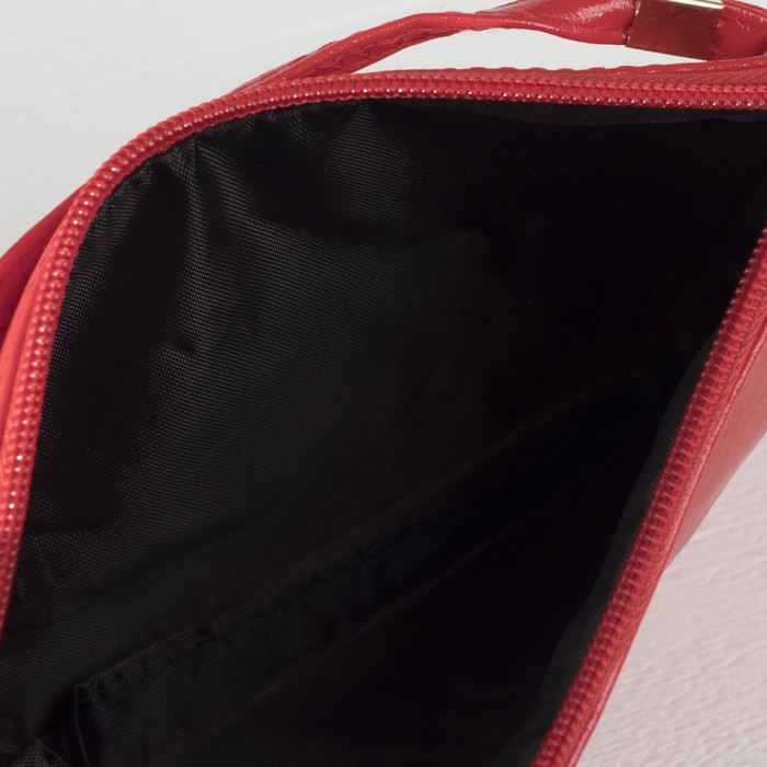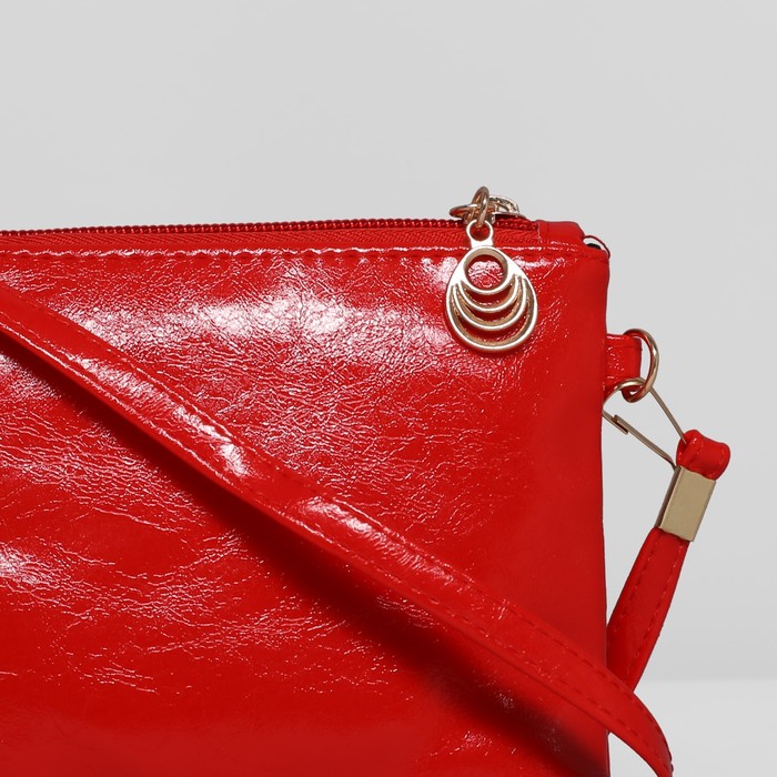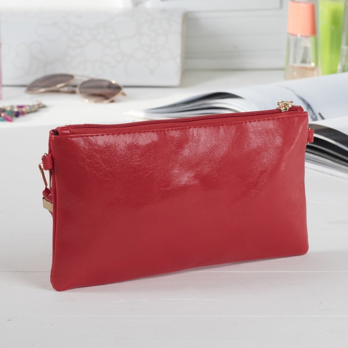 Клатч женский "Глянец", отдел на молнии, длинный ремень, цвет красный