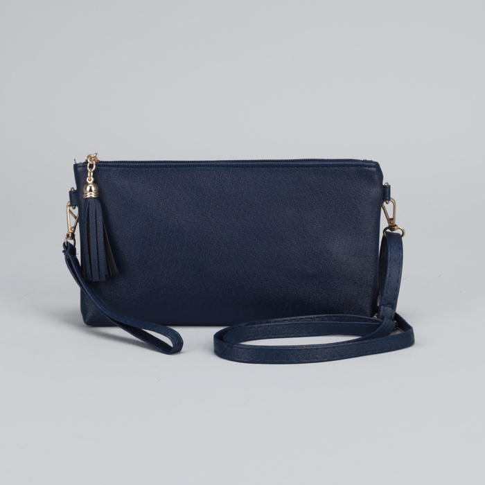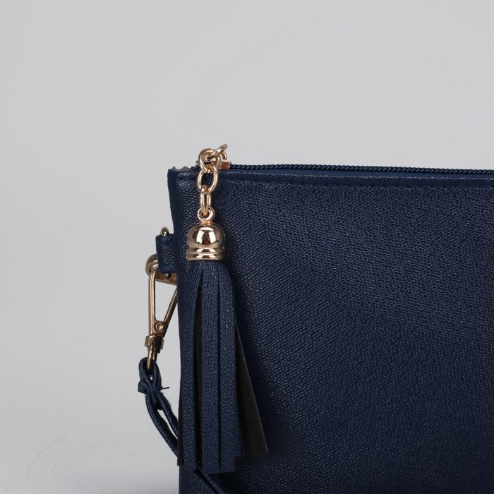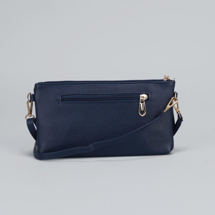 Клатч женский "Классик",1 отдел с перегородкой на молнии, наружный карман, ручка, длинный ремень, цвет синий