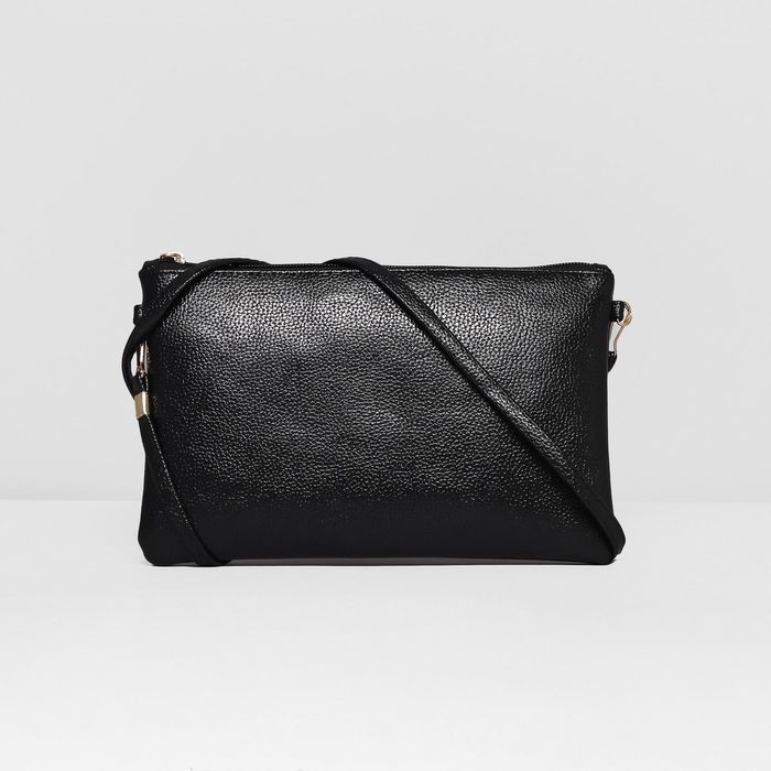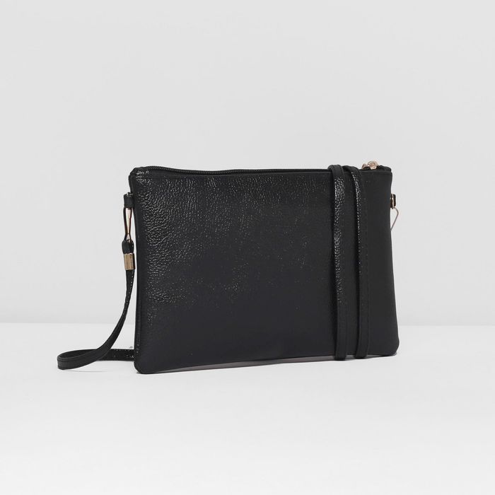 Клатч женский "Классика", отдел на молнии, длинный ремень, цвет черный