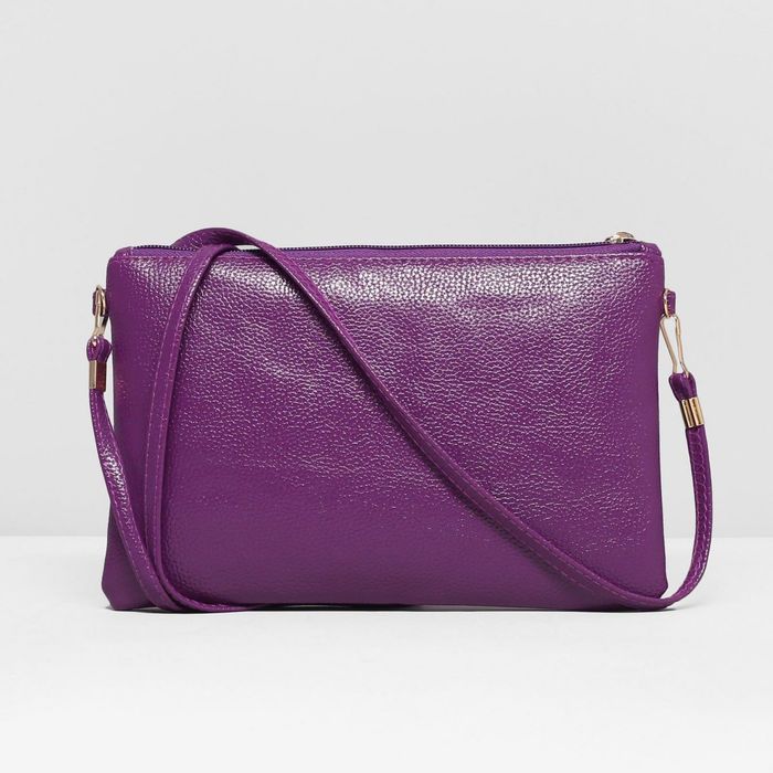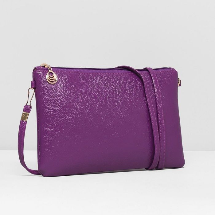 Клатч женский "Классика", отдел на молнии, длинный ремень, цвет фиолетовый