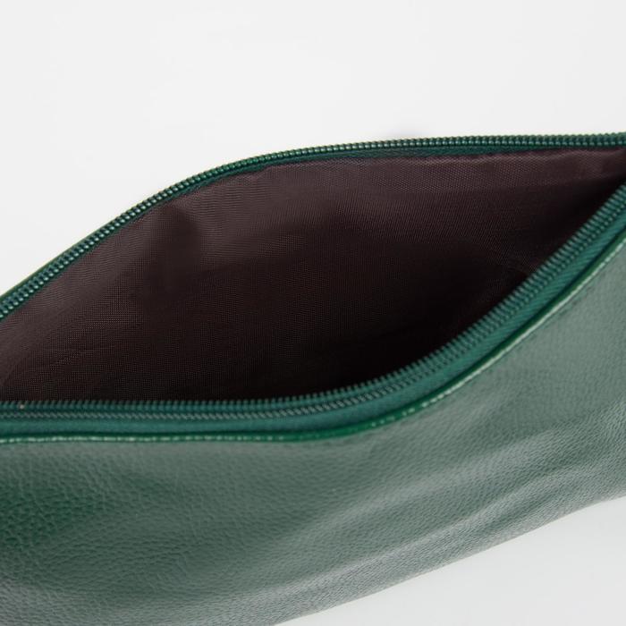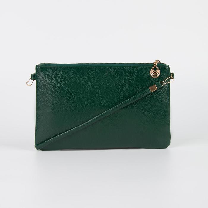 Клатч женский "Классика", отдел на молнии, длинный ремень, цвет зелёный