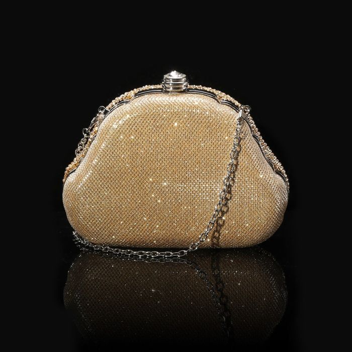 Клатч женский на фермуаре, 1 отдел, цепочка, цвет золотой