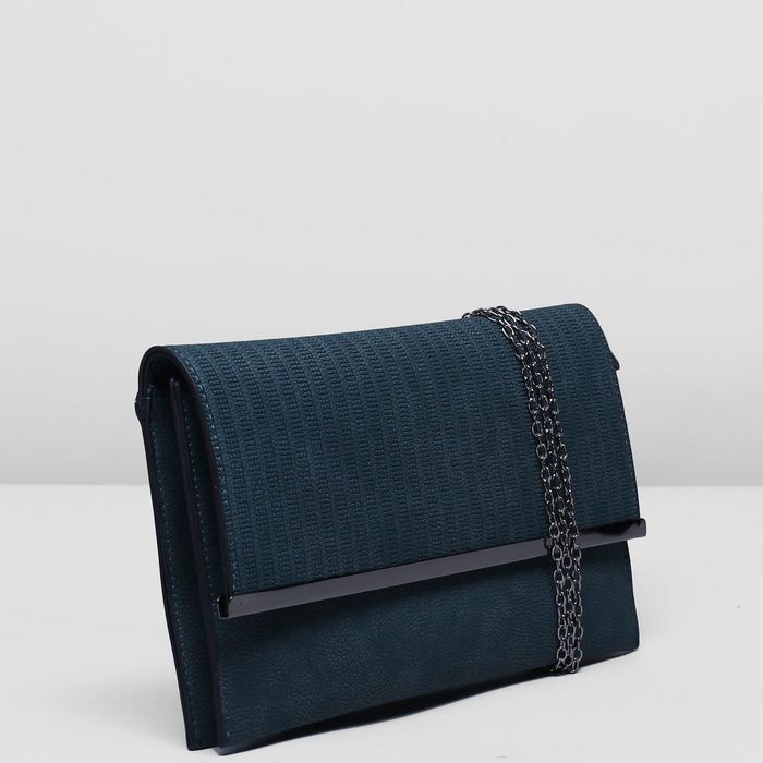 Клатч женский на клапане, 3 отдела, длинная цепь, цвет тёмно-бирюзовый