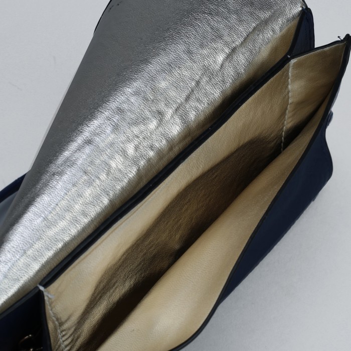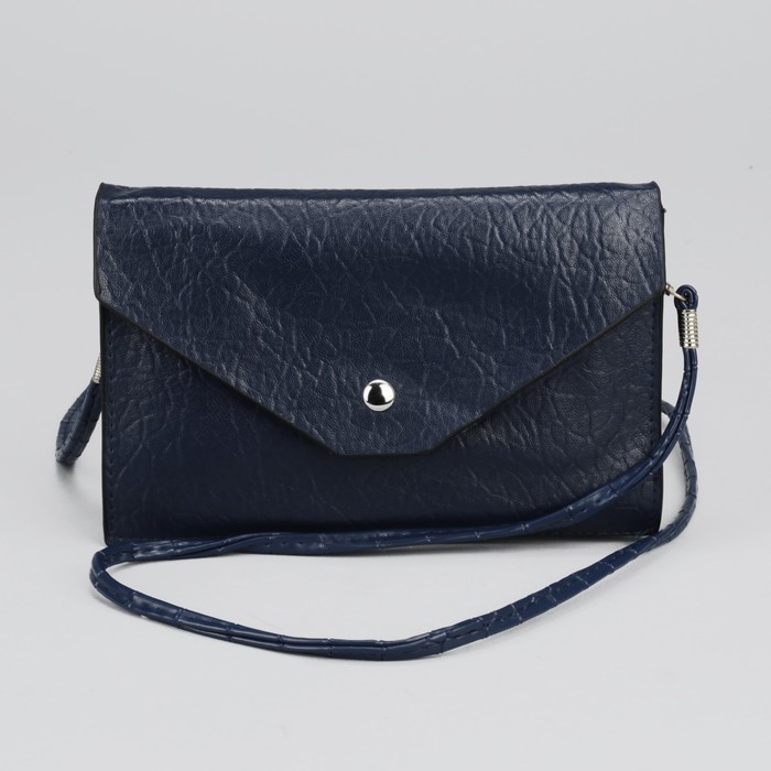 Клатч женский на клапане "Классика", 3 отдела, длинный ремень, синий