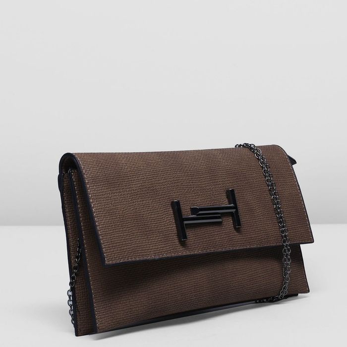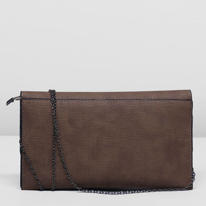 Клатч женский на клапане "Шарм", 3 отдела, длинная цепь, цвет коричневый