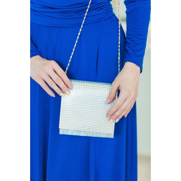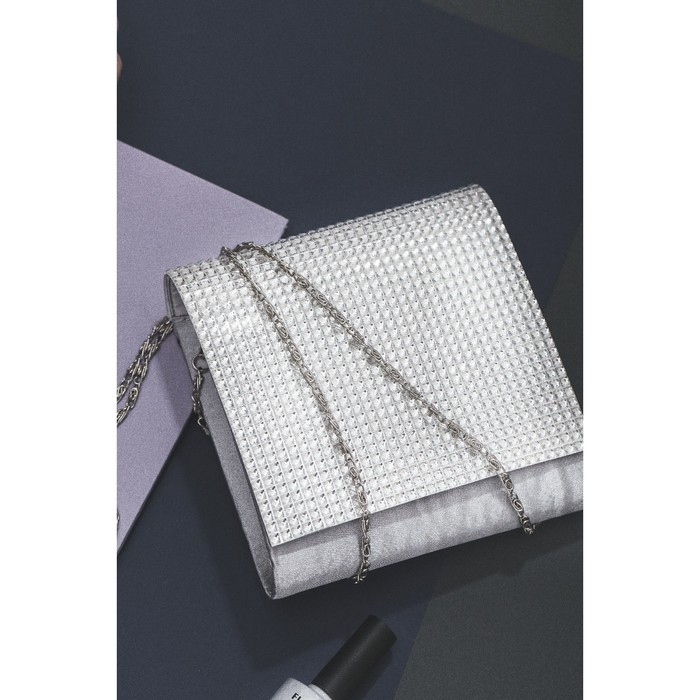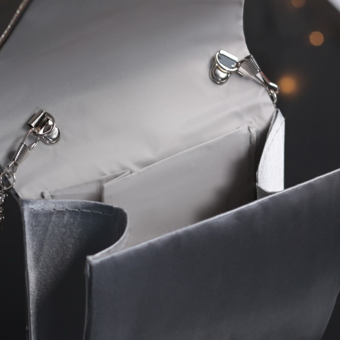 Клатч женский на клапане "Шик", 1 отдел, длинная цепь, серый
