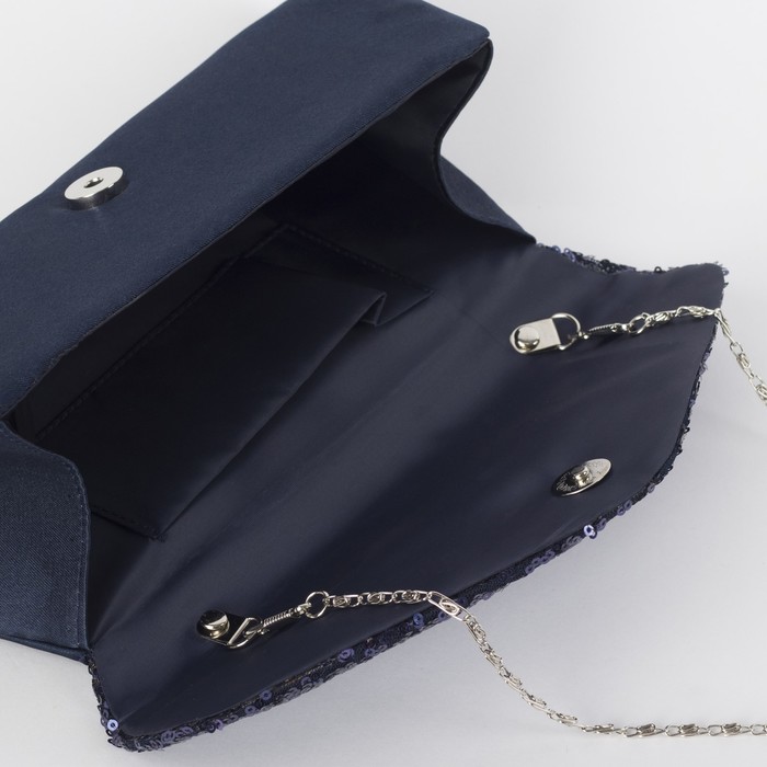 Клатч женский на магните, 1 отдел, длинная цепочка, цвет синий