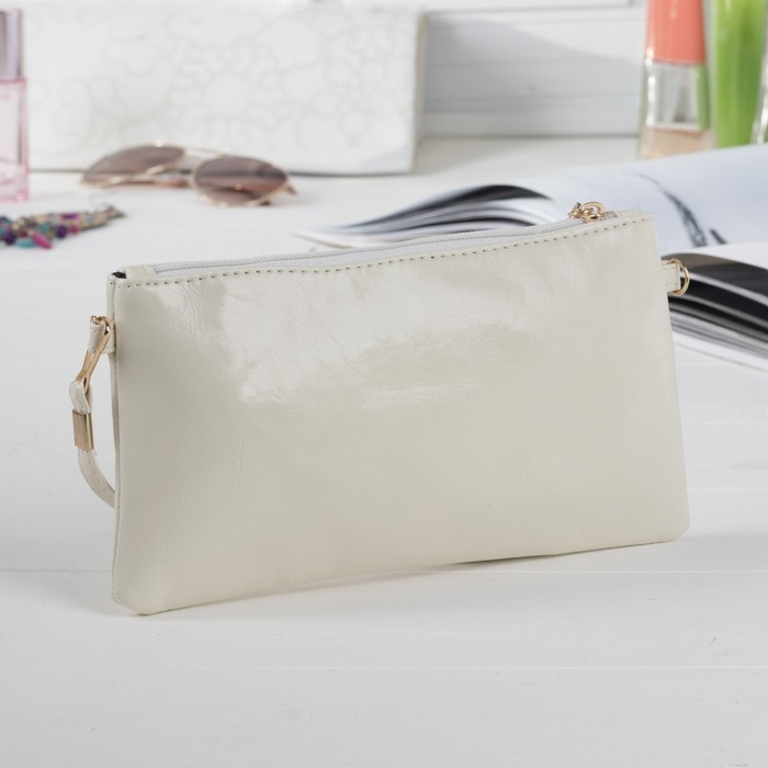 Клатч женский на молнии, 1 отдел, длинный нерегулируемый ремень, цвет молочный