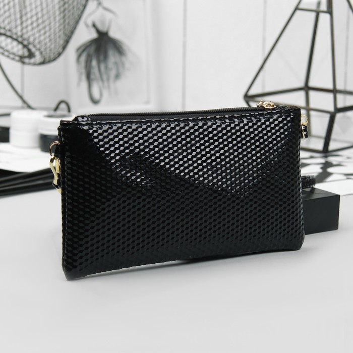 Клатч женский на молнии, 1 отдел, длинный ремень, цвет чёрный