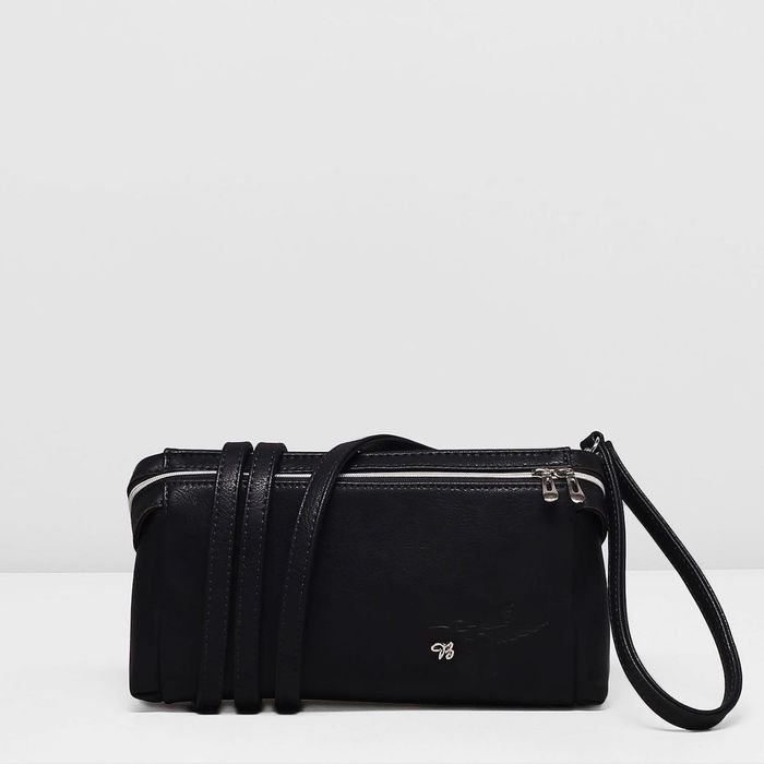 Клатч женский на молнии, 1 отдел, наружный карман, регулируемый ремень, цвет чёрный