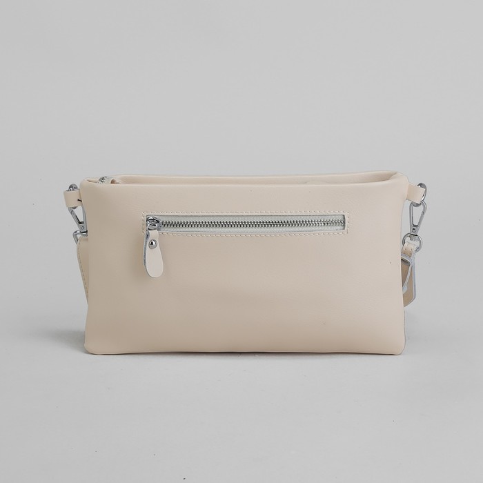 Клатч женский на молнии, 1 отдел, наружный карман, ручка, длинный ремень, цвет молочный