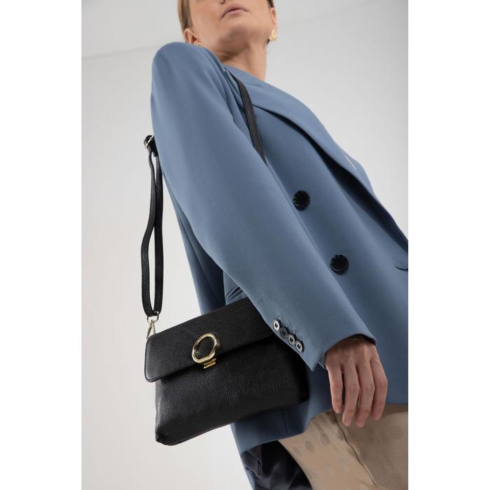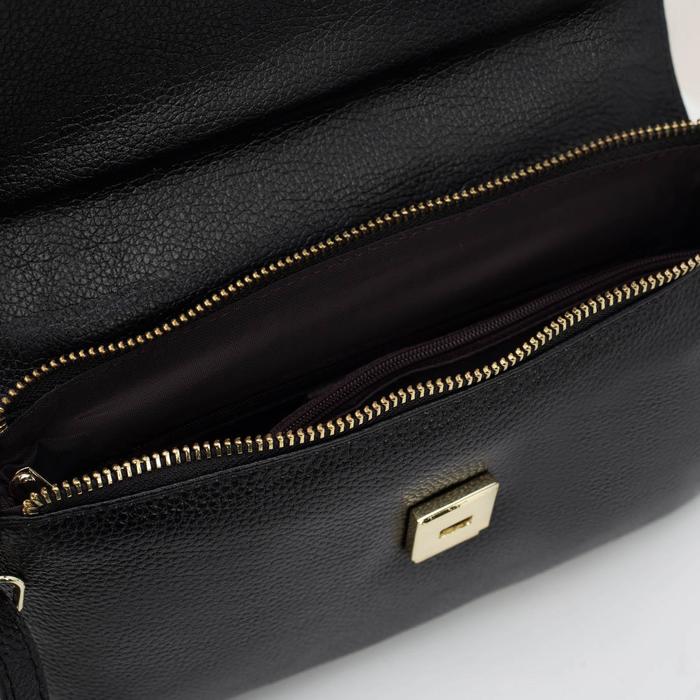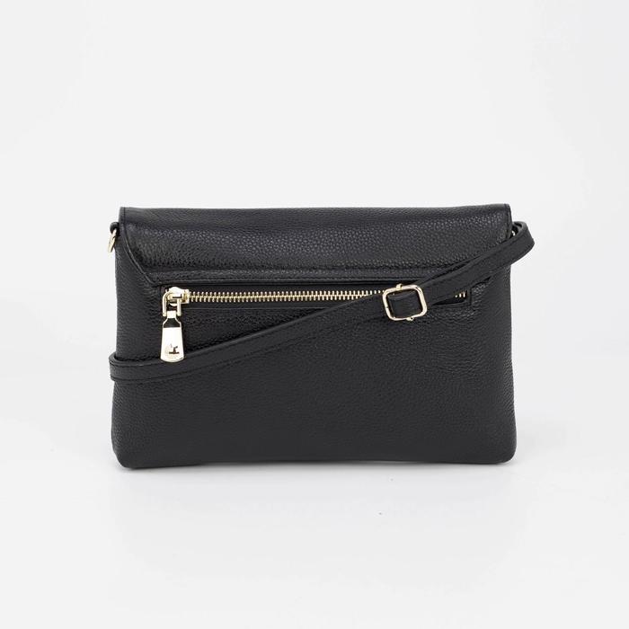 Клатч женский на молнии, 1 отдел с перегородкой, наружный карман, длинный ремень, цвет чёрный