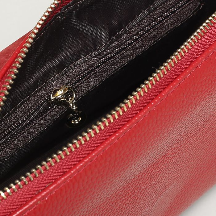 Клатч женский на молнии, 1 отдел с перегородкой, наружный карман, длинный ремень, цвет красный