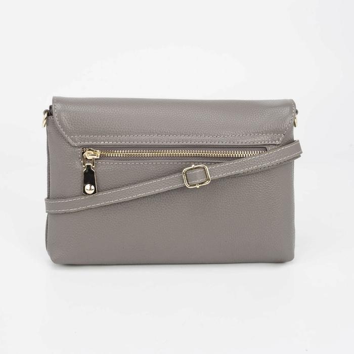 Клатч женский на молнии, 1 отдел с перегородкой, наружный карман, длинный ремень, цвет серый