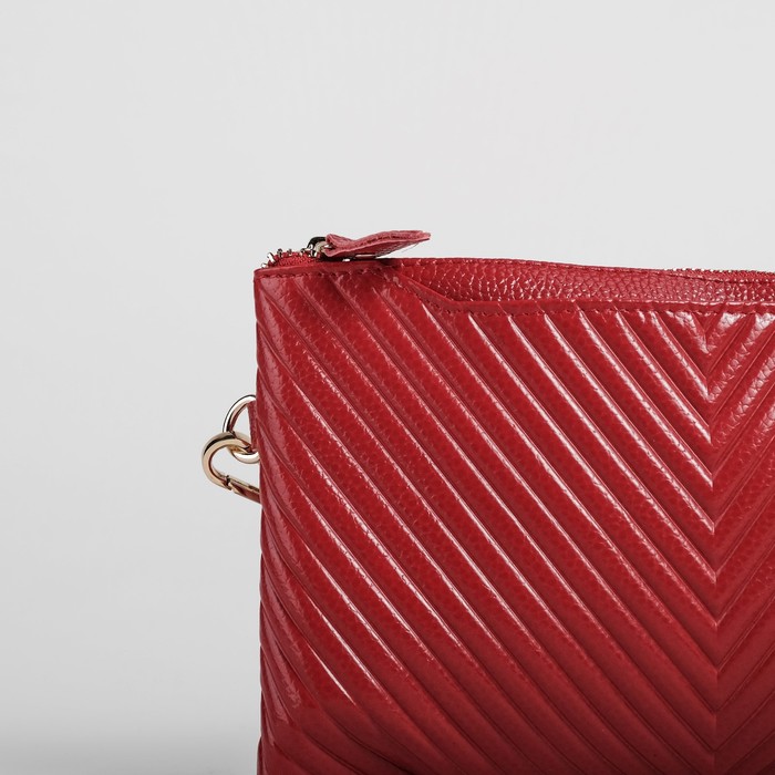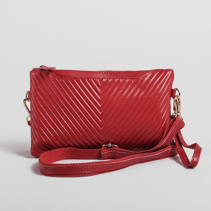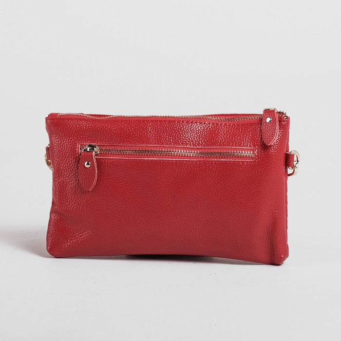 Клатч женский на молнии, 1 отдел с перегородкой, ручка, 2 наружных кармана, длинный ремень, цвет бордовый