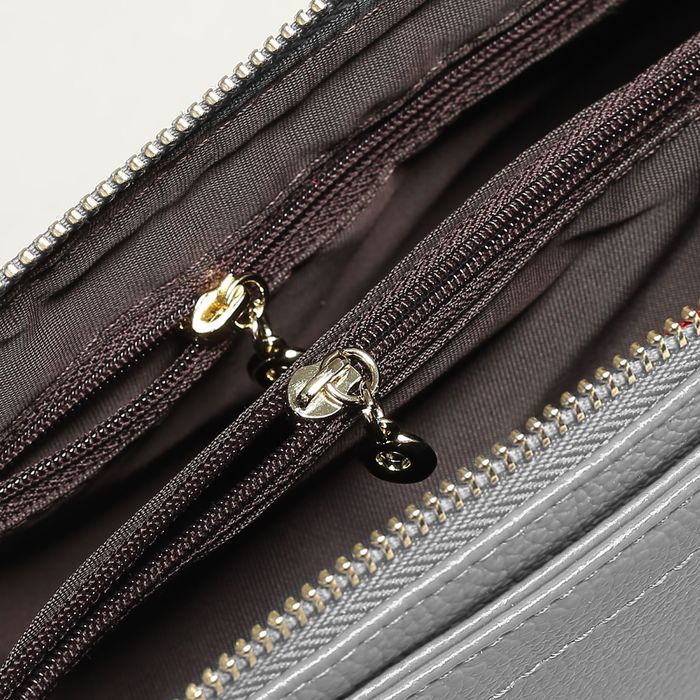 Клатч женский на молнии, 1 отдел с перегородкой, ручка, 2 наружных кармана, длинный ремень, цвет серый