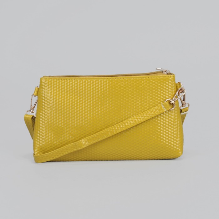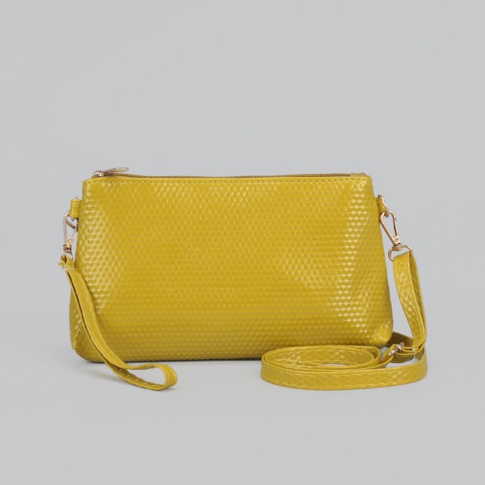 Клатч женский на молнии, 1 отдел с перегородкой, ручка, длинный ремень, цвет жёлтый