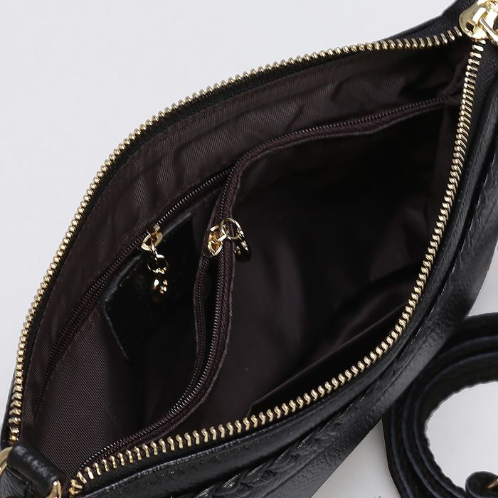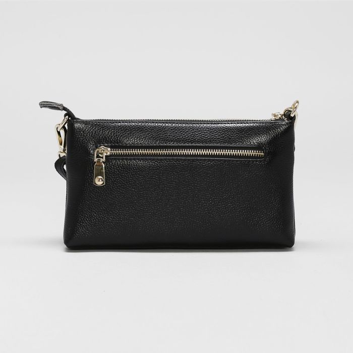 Клатч женский на молнии, 1 отдел с перегородкой, ручка, наружный карман, длинный ремень, цвет чёрный