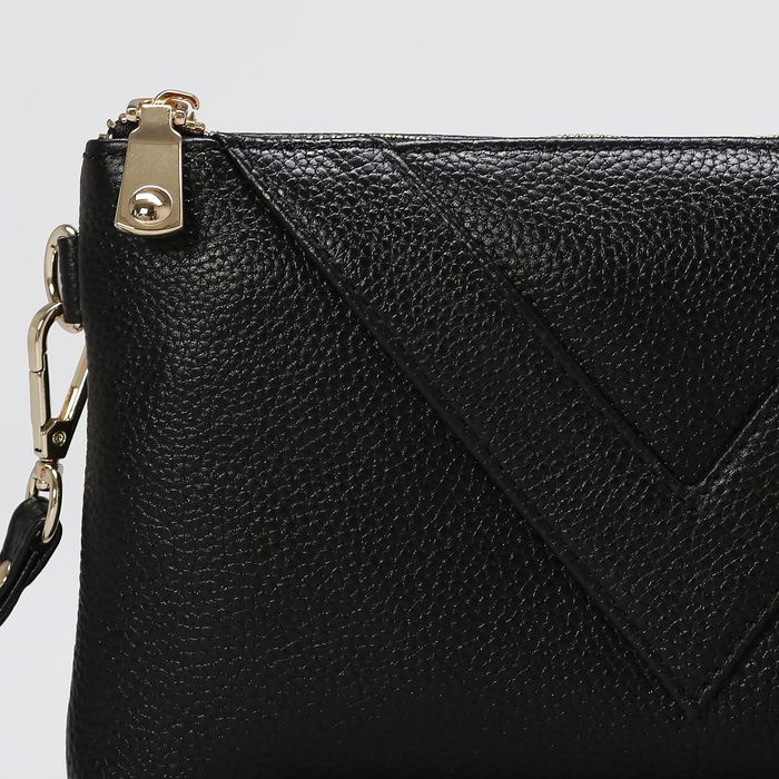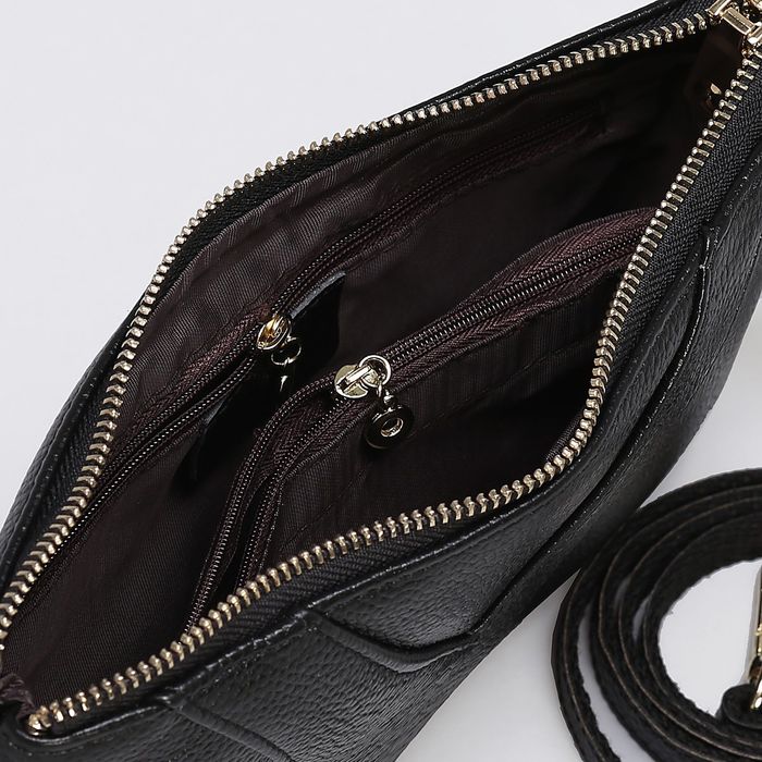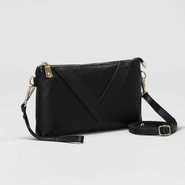 Клатч женский на молнии, 1 отдел с перегородкой, ручка, наружный карман, длинный ремень, цвет чёрный