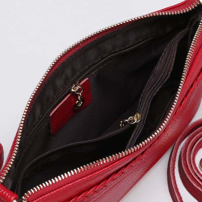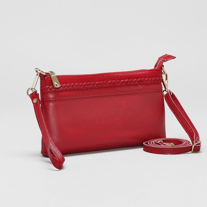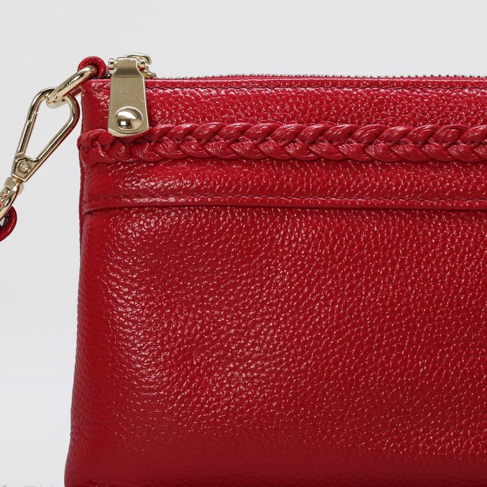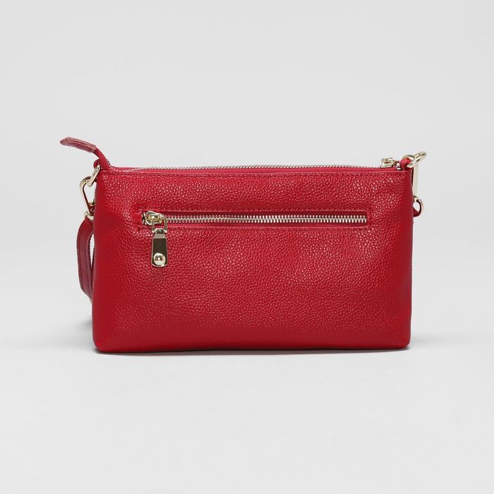 Клатч женский на молнии, 1 отдел с перегородкой, ручка, наружный карман, длинный ремень, цвет красный