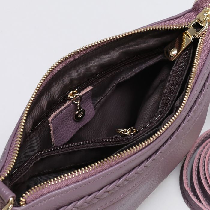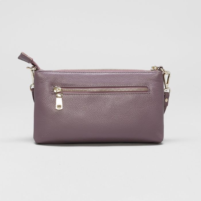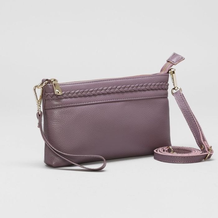 Клатч женский на молнии, 1 отдел с перегородкой, ручка, наружный карман, длинный ремень, цвет пудра