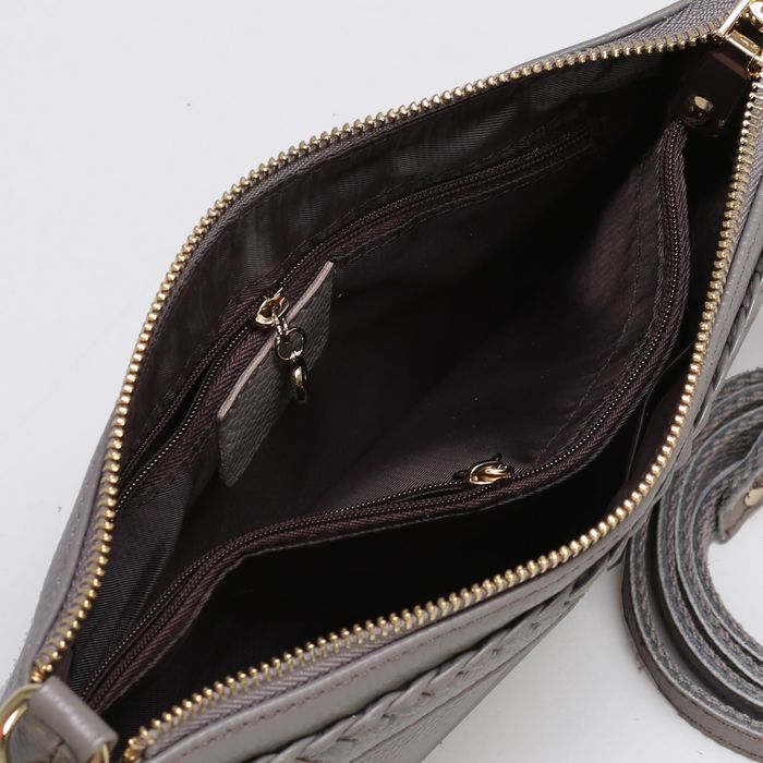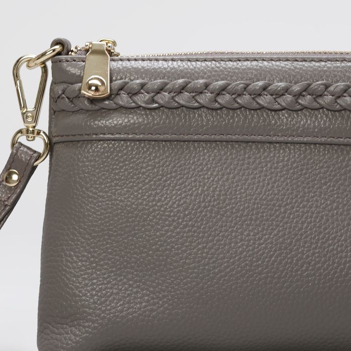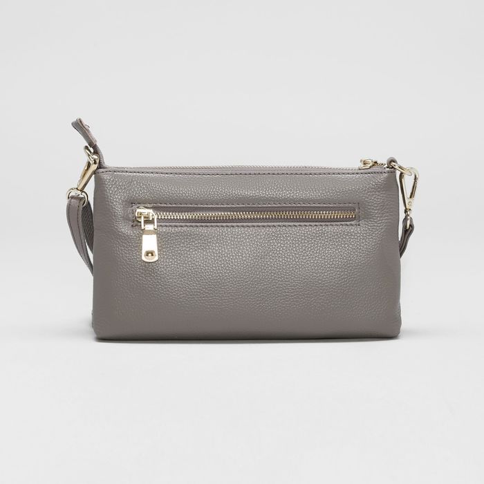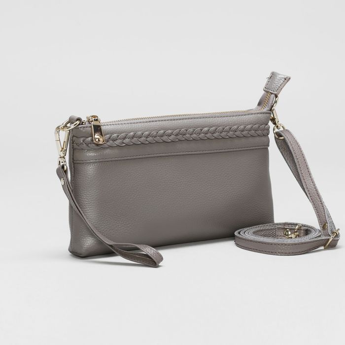 Клатч женский на молнии, 1 отдел с перегородкой, ручка, наружный карман, длинный ремень, цвет серый